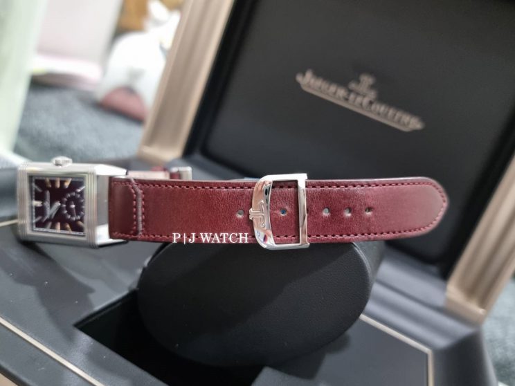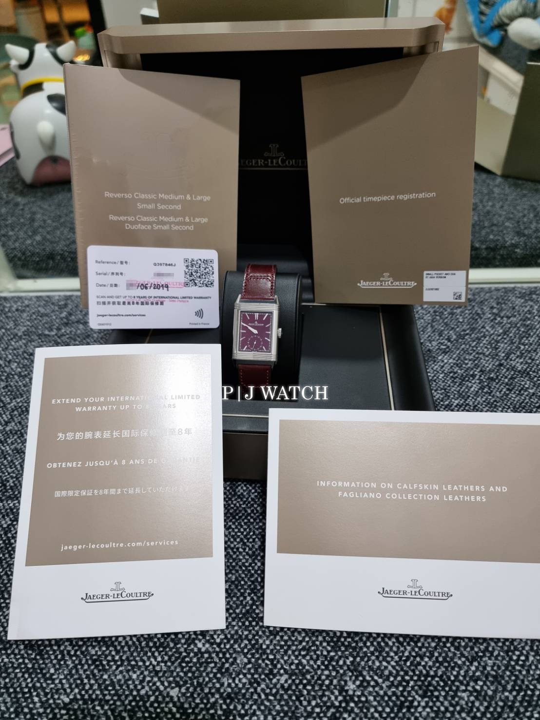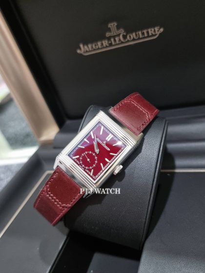 นาฬิกาแบรนด์หรูอย่าง JAEGER-LECOULTRE หรีอ JLC รุ่น Reverso Tribute Small Seconds Ref.Q397846J กับหน้าตาโดดเด่นทรงสี่เหลี่ยมผืนผ้า และหน้าปัดสีแดงสด หลักชั่วโมงแบบขีดและเข็มชั่วโมงนาที เป็นสีเงิน และมีหน้าปัดย่อยแสดงเวลาวินาที ตรงตำแหน่ง 6 นาฬิกา ตัวเคสทำจากสแตนเลสขนาด 45.6 มม. x 27.4 มม. x 8.5 มม. รุ่นนี้เป็นเครื่องไขลานด้วยมือครับใช้เครื่อง JLC caliber 822/2 ให้จังหวะการเต้นที่ 21,600vph พร้อมกำลังสำรอง 42 ชั่วโมง กันน้ำได้อยู่ที่ 30 เมตร มาพร้อมกับสายหนังสีแดงเดินด้ายสีแดง พร้อมกล่อง คู่มือและใบรับประกันมาให้ครับ