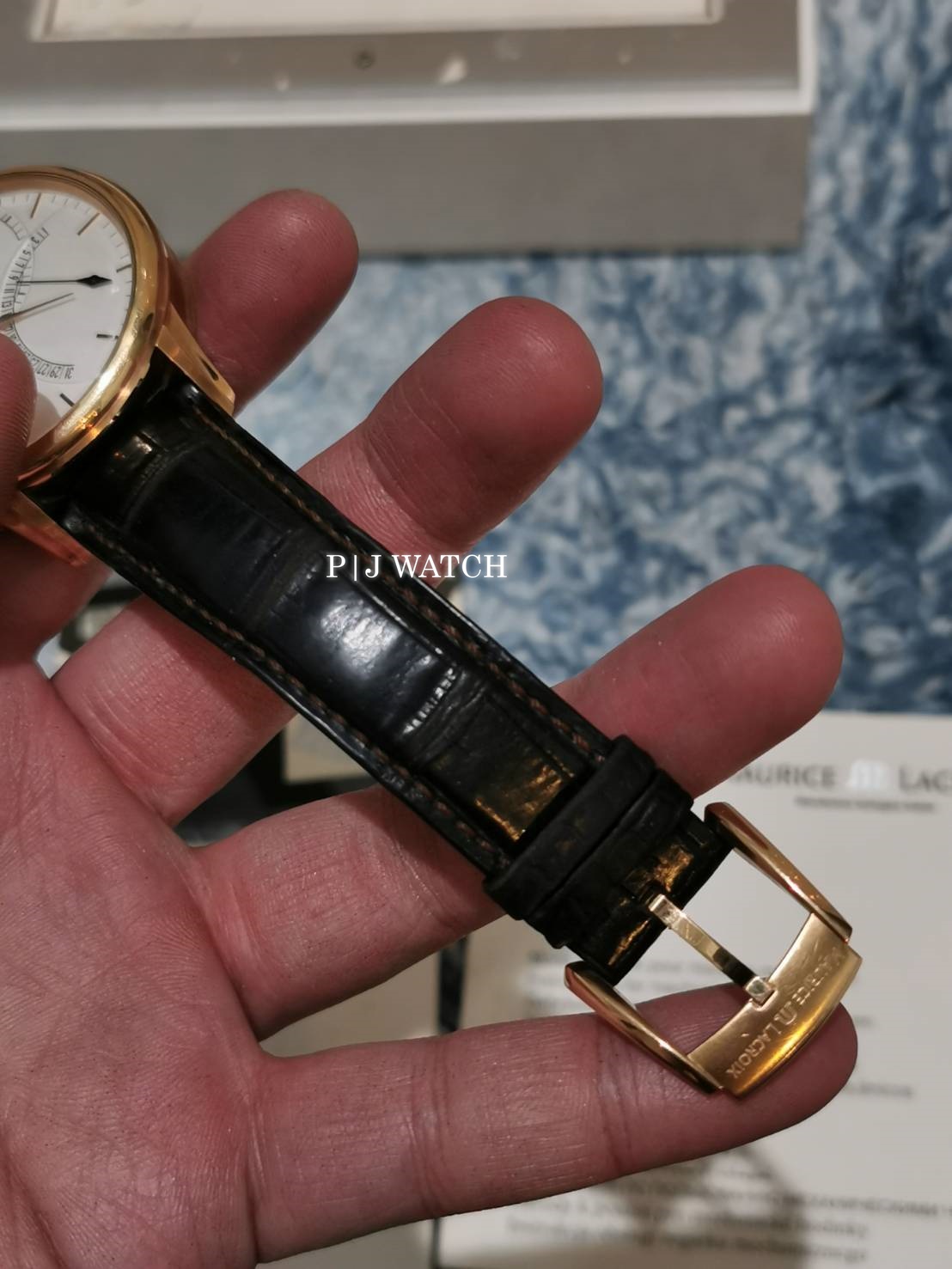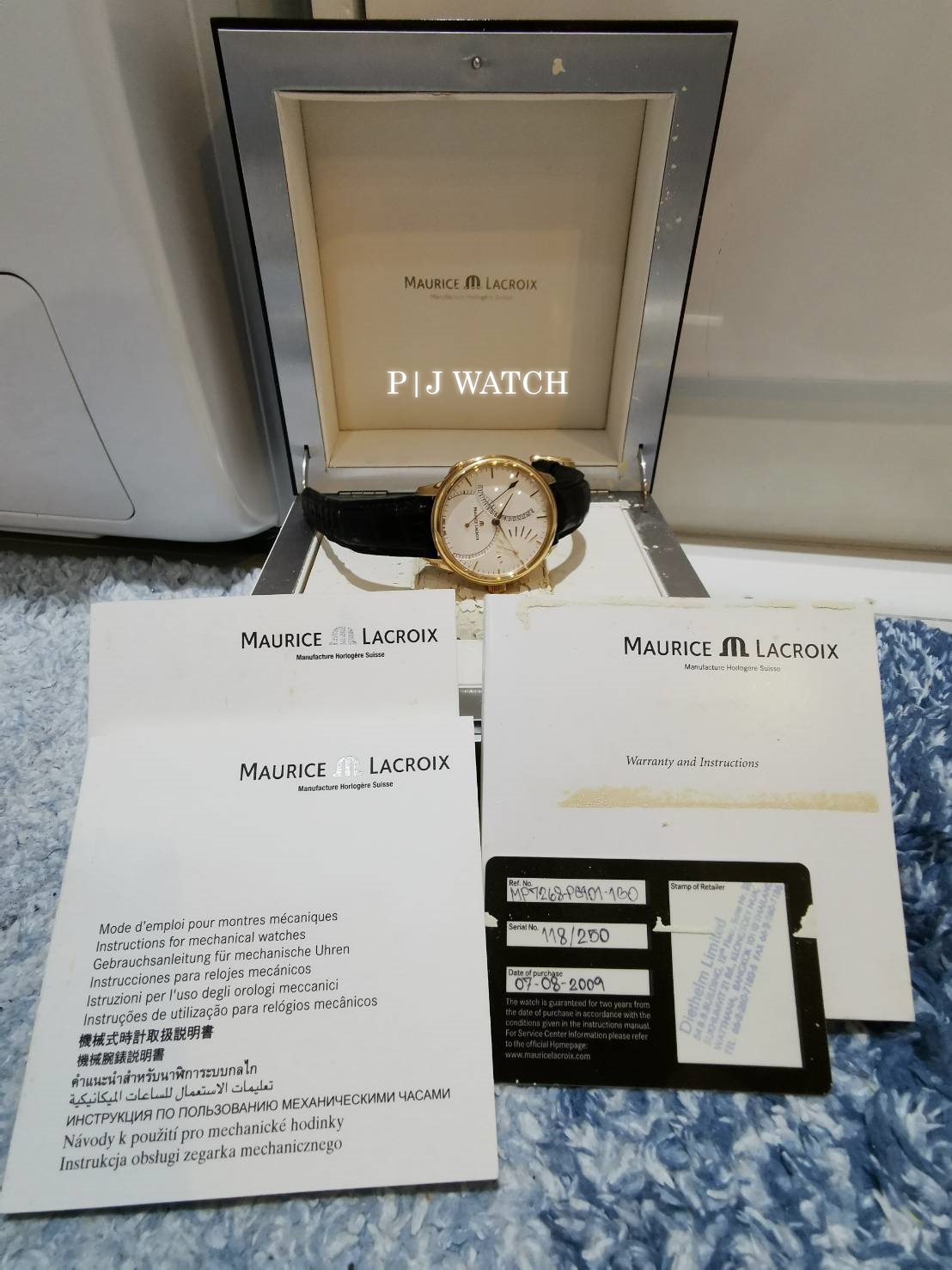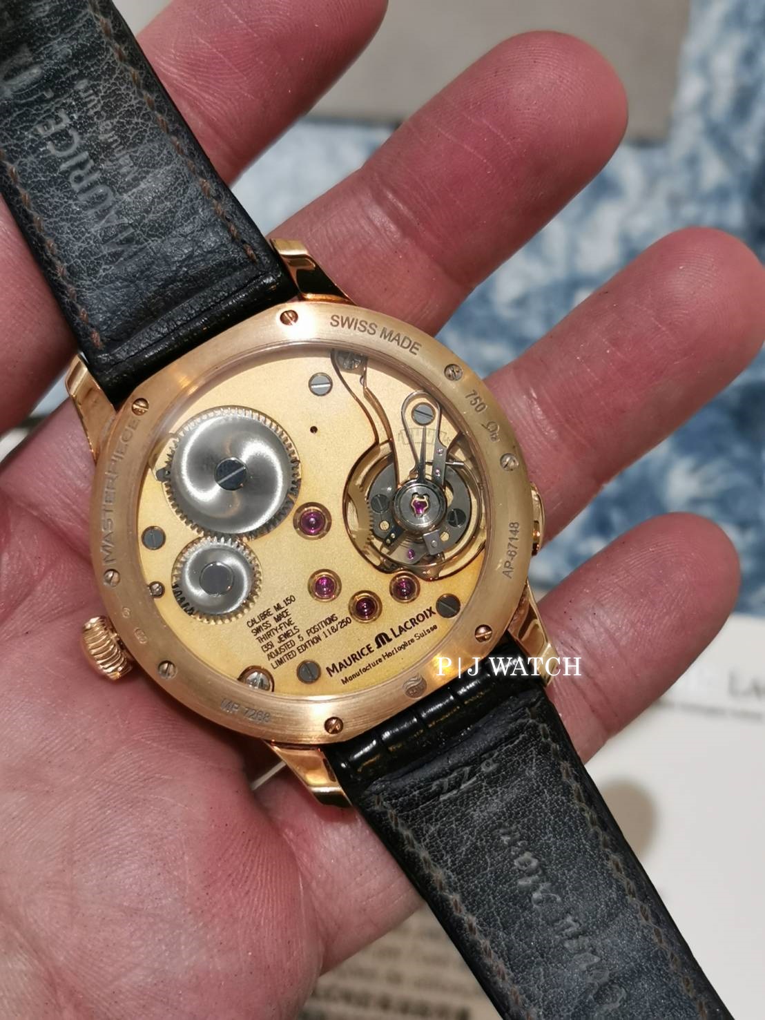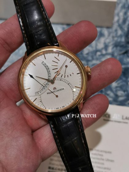 ตัวเรือนเป็น Rose gold 18kt พร้อมสายหนังสีดำ หน้าปัดสีขาวเข็มสีทองและตัวบอกเวลาชั่วโมง นาที บอกวันที่ที่ตำแหน่ง 10 และตำแหน่งนาฬิกา 3 แสดงพลังงานสำรอง ตัวเครื่องของ Maurice Lacroix ใช้ Calibre ML 150 พร้อม power reserve 40 ชั่วโมง หน้าปัดเป็นคริสตัลแซฟไฟร์ป้องกันรอยขีดข่วน ด้านหลังเคสใส ทรงกลม ขนาดตัวเรือน: 46 มม.
