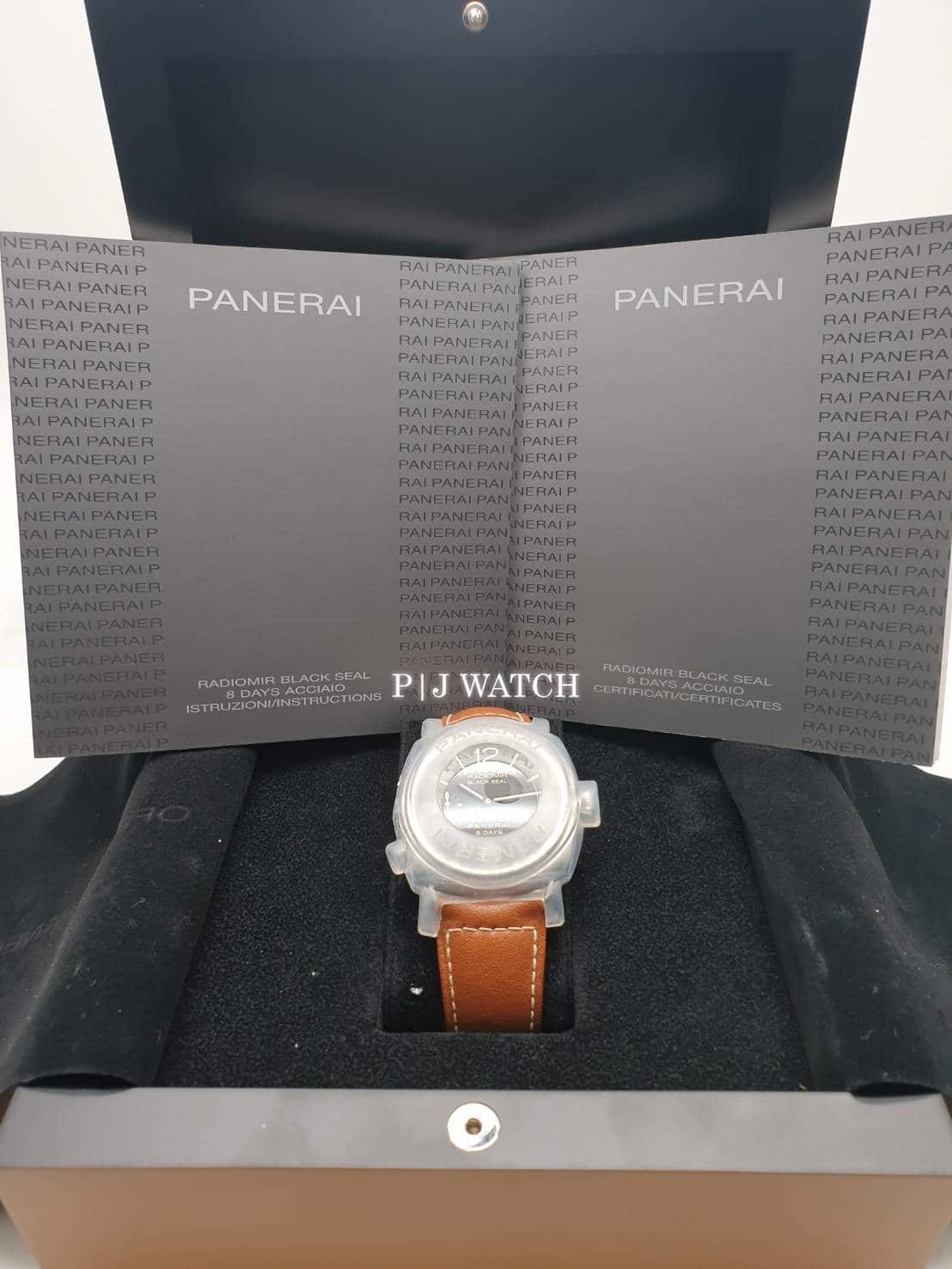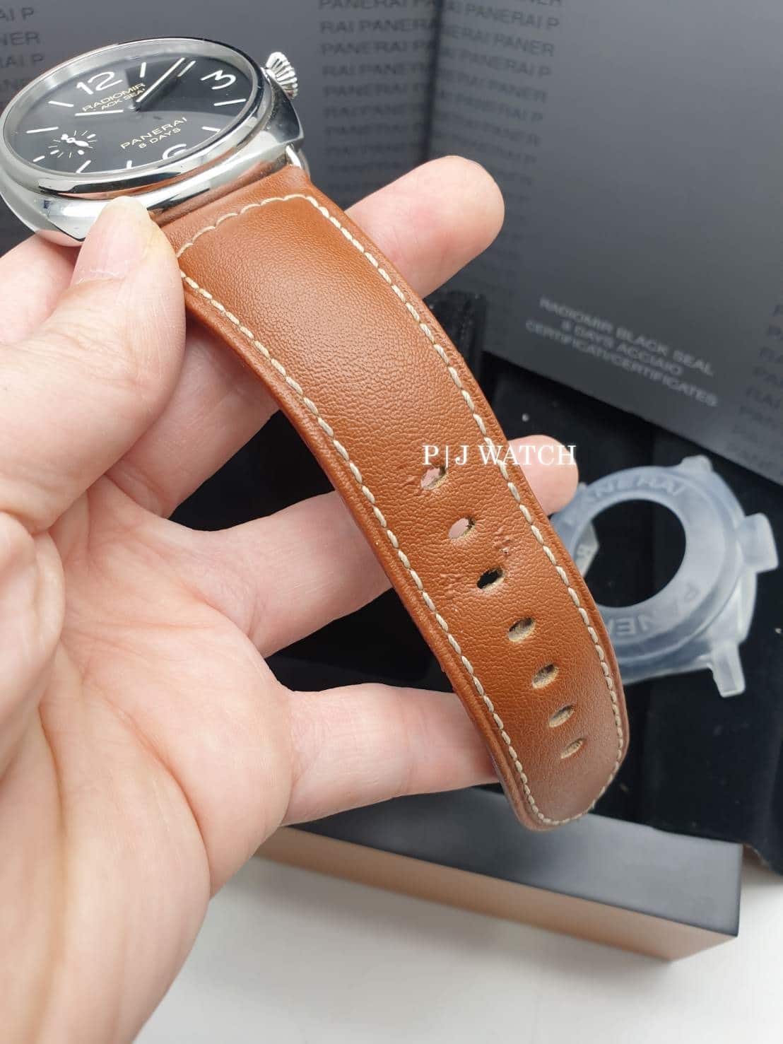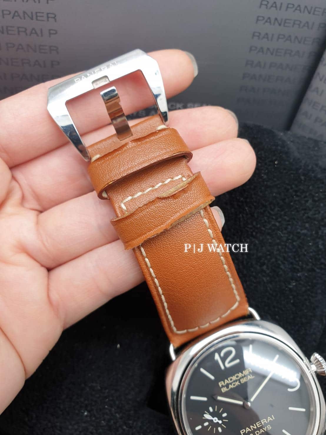 นาฬิกาแบรนด์ Panerai ตระกูล Radiomir รุ่น Black Seal 8 Days PAM 609 หน้าปัดสีดำ หลักชั่วโมงแบบเพ็นท์ เป็นพรายน้ำเรืองแสง มีเข็มวินาทีแยกหน้าปัดย่อยตรงตำแหน่ง 9 นาฬิกา ตัวเคสเป็นสแตนเลส ขนาด 45มม. กลไกเป็นแบบไขลาน เครื่อง Calibre P.5000 มี power reserve อยู่ที่ 192 ชั่วโมง กันน้ำลึกได้ 100 เมตร ใช้กระจกทั้งด้านหน้าและหลังเป็น sapphire ทนต่อรอยขีดข่วนได้ดี เม็ดมะยมแบบล็อกขันเกลียว มาคู่กับสายหนังวัวสีน้ำตาลเดินด้ายสีขาว buckle แบบหัวเข็มขัด มีกล่อง คู่มือ มาให้ครับ ท่านใดสนใจนาฬิกาแนวคลาสสิคแบบนี้ ติดต่อสอบถามเข้ามาได้ครับ ยินดีให้บริการทุกท่านครับ