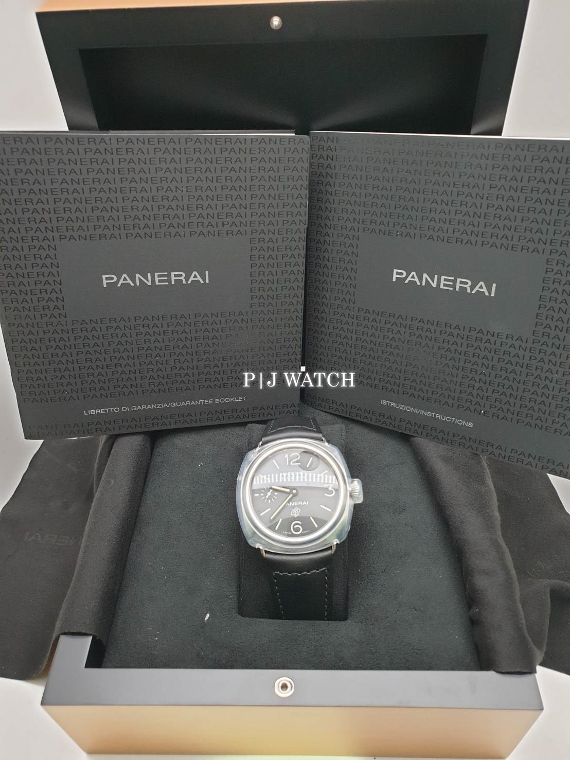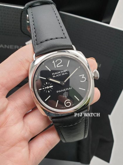 นาฬิกา Panerai Radiomir Black Seal Logo Pam 380 รุ่นนี้เป็น T Series (Circa 2018) ครับ กับตัวเรือนเป็นทรงสี่เหลี่ยมโค้งมนขนาดใหญ่ วัสดุเคสสแตนเลสเกรด 316L ปัดเงาทั้งเรือน ความกว้างตัวเรือน 45 มม. หน้าปัดสีดำ มาร์คเกอร์ชั่วโมงแบบพิมพ์ลงหน้าปัดเป็นพลายน้ำ Super Luminova เห็นชัดเจนมากๆ ในตอนมืด ส่วนเข็มบอกชั่วโมงนาที เป็นสีดำพร้อมพรายน้ำ ส่วนเข็มบอกเวลาวินาที ถูกแยกเป็นอีกหน้าปัดตรงตำแหน่ง 9 นาฬิกา และสัญลักษณ์โลโก้ที่ตำแหน่ง 6 นาฬิกา ด้านหลังฝาแบบเรียบครับพิมพ์โลโก้ และเครื่องหมายบอกรุ่น ด้านหน้าครอบทับด้วยกระจก Sapphire ทรงโดม สามารถกันน้ำได้อยู่ที่ 100 เมตร เม็ดมะยม แบบ Screw in Crown ด้านตัวเครื่องใช้เครื่อง OP II มี 17 Jewlels รุ่นนี้กลไกเป็นแบบไขลานด้วยมือ ให้พลังงานสำรองอยู่ที่ 56 ชม. มาพร้อมกับหนังวัวสีน้ำดำเดินด้ายสีดำพร้อมตัวล็อคแบบหัวเข็มขัดปัดเงา ของแถมมีกล่อง คู่มือมาให้ครับ สภาพสวยงามเนียนๆ ครับ ท่านใดที่กำลังมองหา PAM รุ่นนี้อยู่ไม่ผิดหวังแน่นอนครับเรือนนี้ ติดต่อสอบถามเข้ามาได้เลยครับ