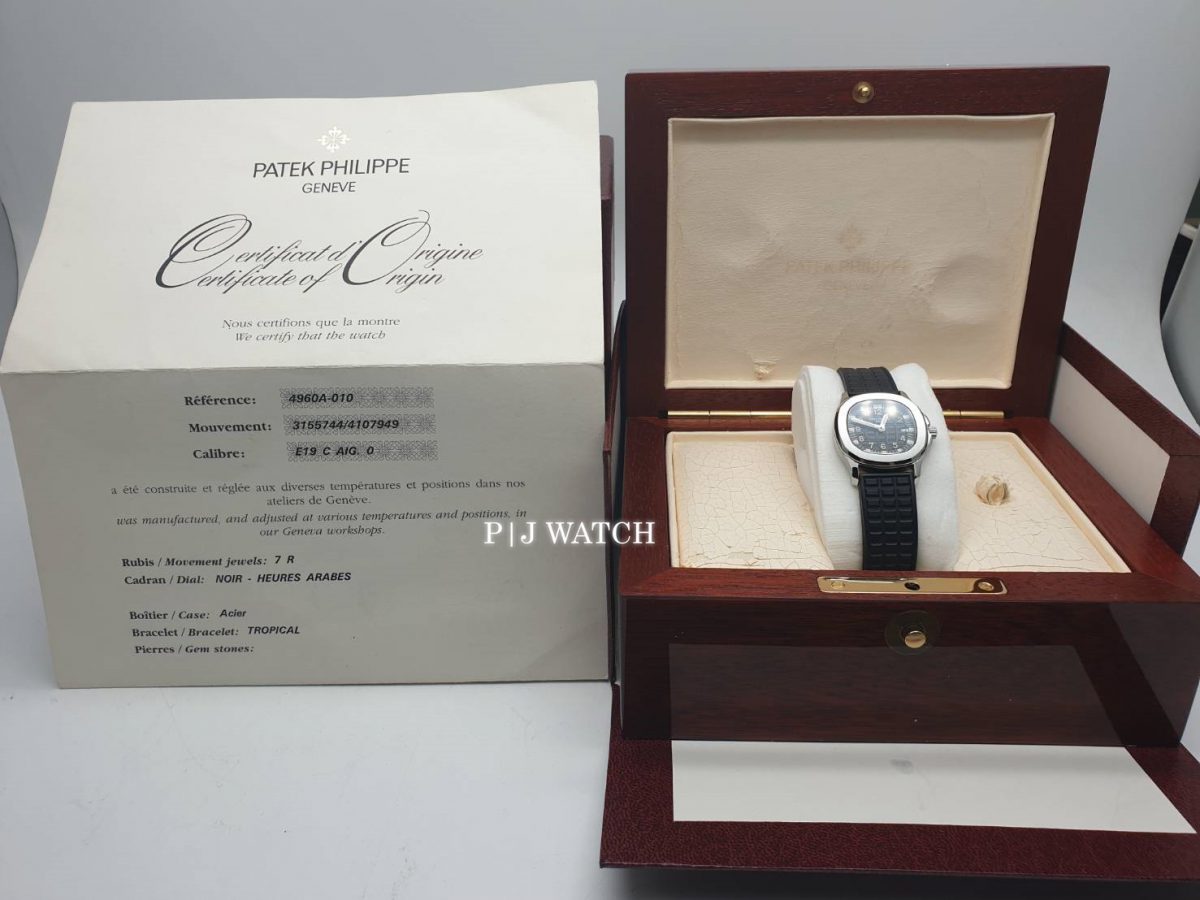 Patek Aquanaut 4960A-010 เรือนนี้เป็นรุ่นยอดนิยมของสาวๆ มากครับ ที่มีขนาด 30mm หน้าปัดที่ดำ กลไกเรือนนี้เป็นระบบ Quartz มาพร้อมกับสายยาง สเปคดังตารางด้านล่างนี้เลยครับ มาพร้อมกล่อง ใบรับประกัน ในสภาพที่สวยงามมากๆ ครับ