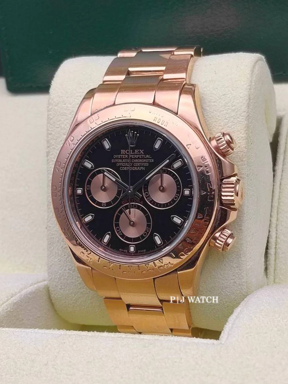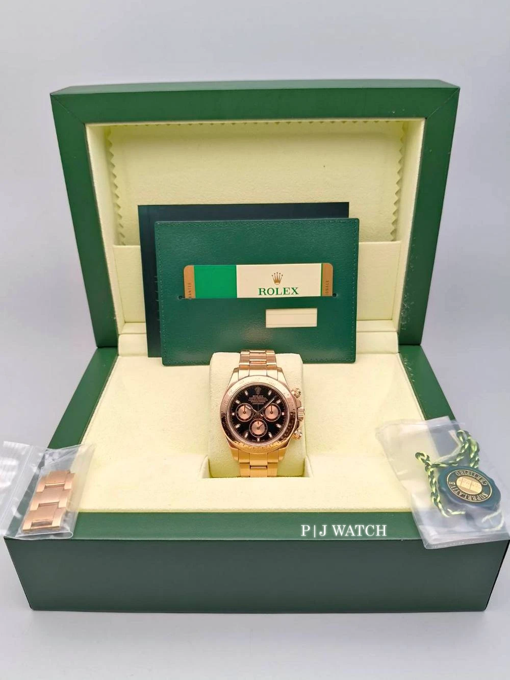 | Accessories/Certification/อุปกรณ์เสริมและใบรับรอง | กล่อง, คู่มือ, ใบรับประกัน, ป้ายรับรอง COSC, ข้อต่อสาย Oyster Everose Gold 18k |