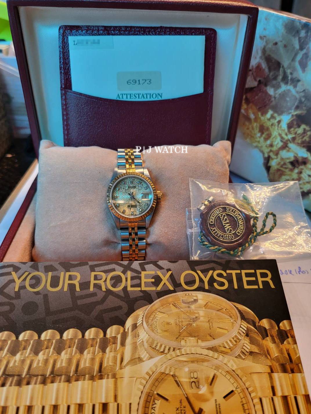 | Accessories/Certification/อุปกรณ์เสริมและใบรับรอง | กล่อง, คู่มือ, ใบรับประกัน ,ข้อต่อสายจูบิลี่ ทูโทน ป้ายรับรอง COSC |
