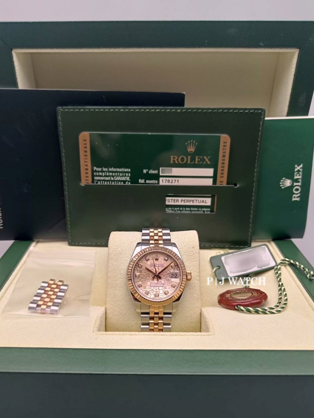 | Accessories/Certification/อุปกรณ์เสริมและใบรับรอง | กล่อง, คู่มือ, ใบรับประกัน, ข้อต่อสายจูบิลี่ ทูโทน , ป้ายรับรอง COSC |