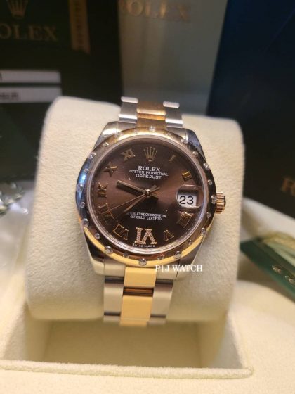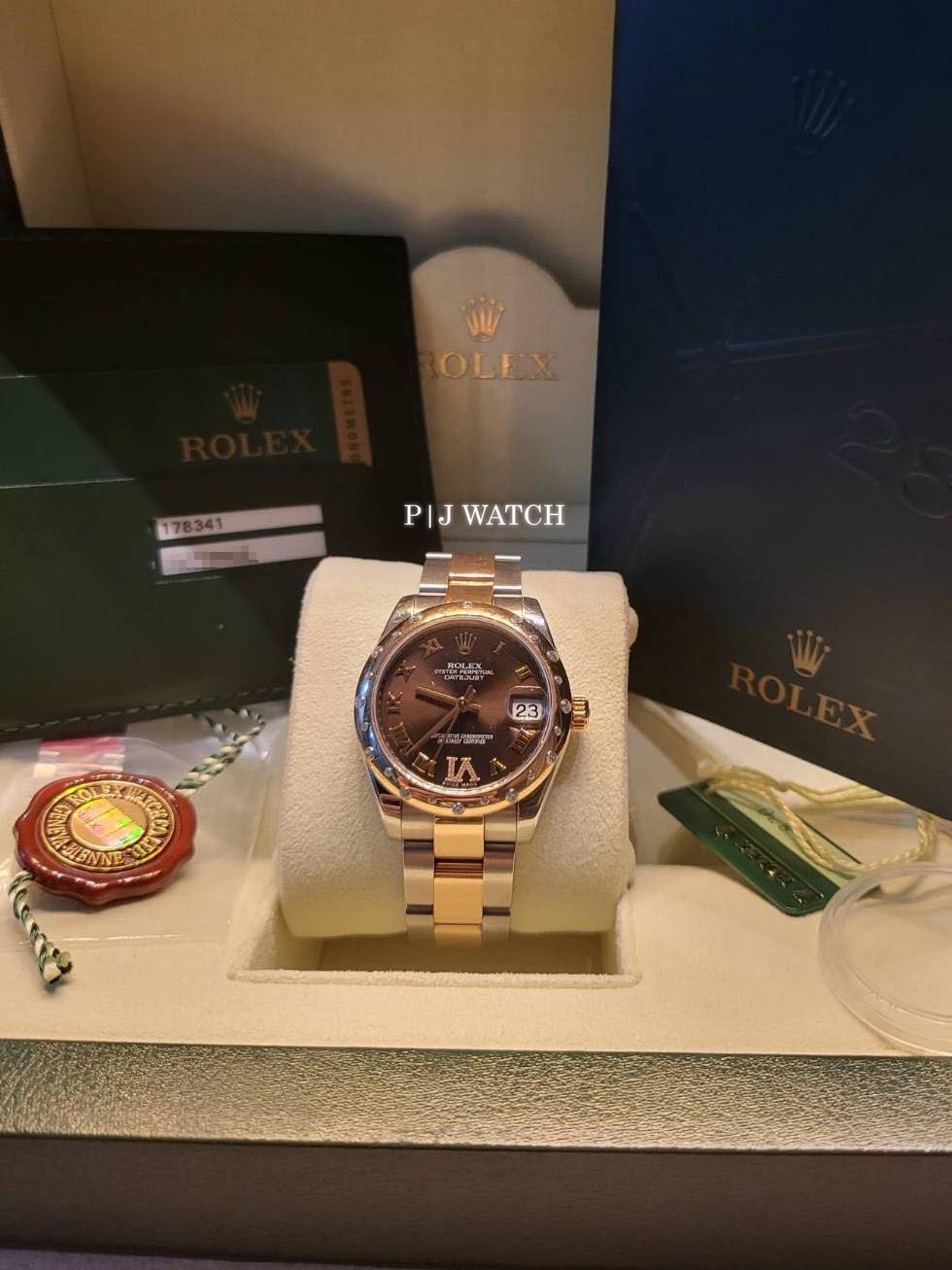 | Bezel material/วัสดุขอบหน้าปัด | Rose Gold ประดับเพชรสลับเม็ดใหญ่ – เล็ก รวม 24 เม็ด |