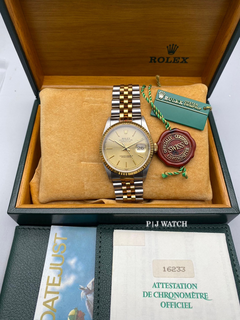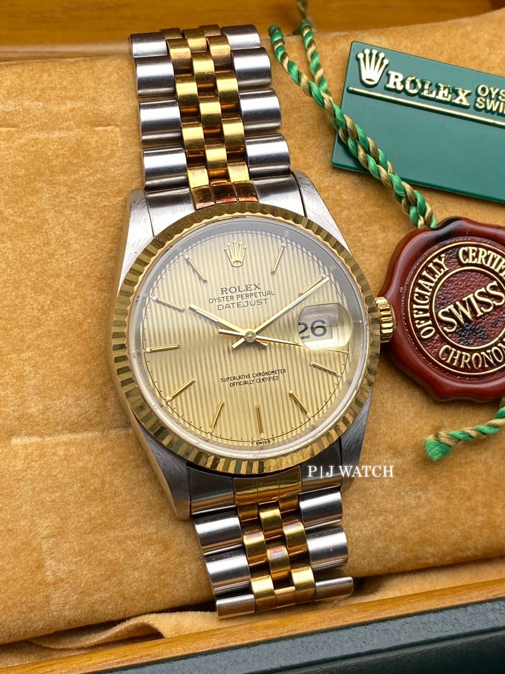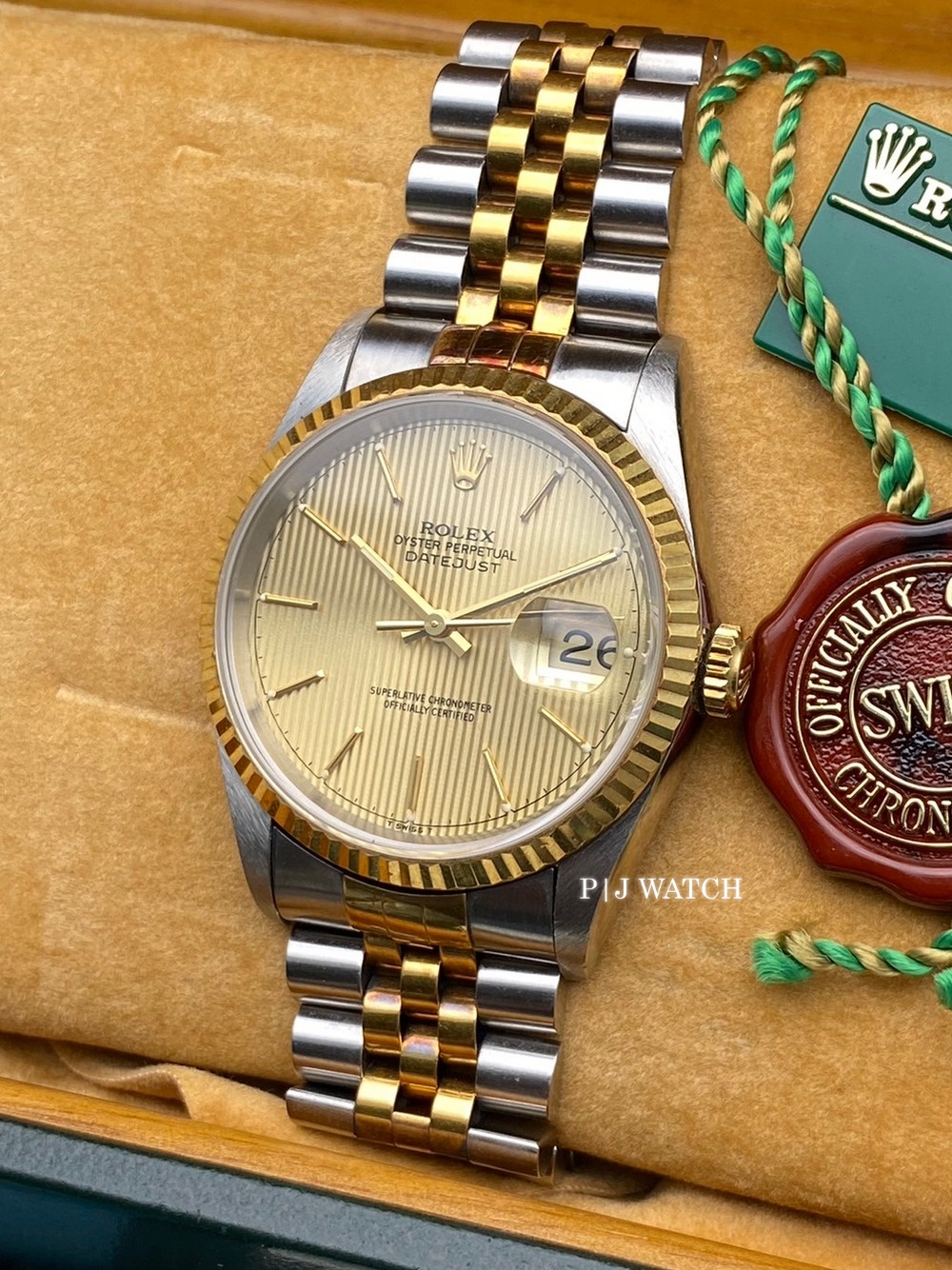 | Bezel material/วัสดุขอบหน้าปัด | Yellow Gold 18k กัดลายเซาะร่อง “Fluted” |