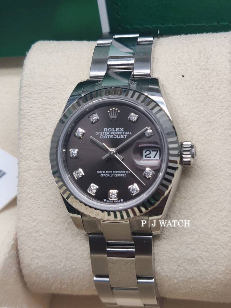 Rolex Lady-Datejust 28mm Dark Grey Diamond Dial Ref.279174