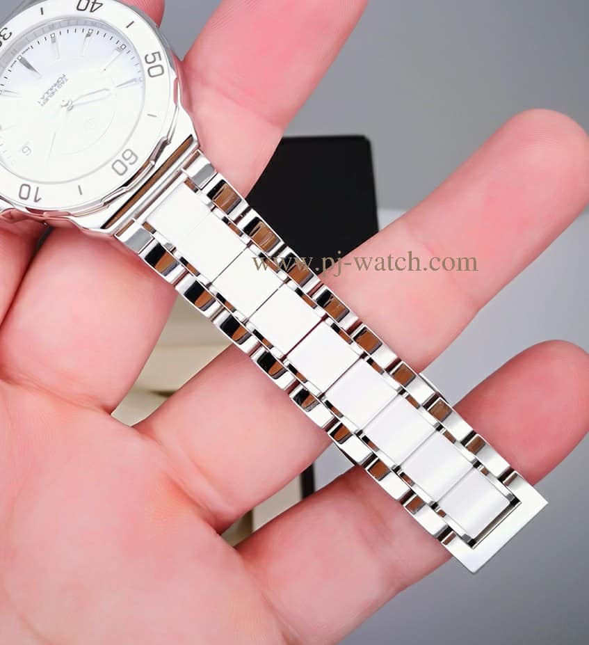 -วัสดุตัวเรือนผลิตมาจาก Ceramic สีขาว สลับกับ Stainless Steel สวยงามลงตัวมากครับ รวมถึง หน้าปัดสีขาว Ceramic ด้วยครับ